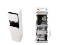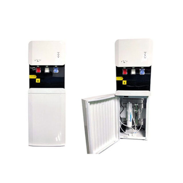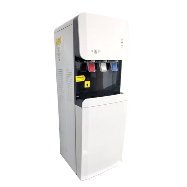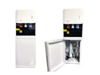 Equipo dispensador de agua premium, cuenta con un sistema de purificación que permite que vaya conectado directo a la red de agua, obteniendo agua pura e ilimitada, además cuenta con un seguro para agua caliente.